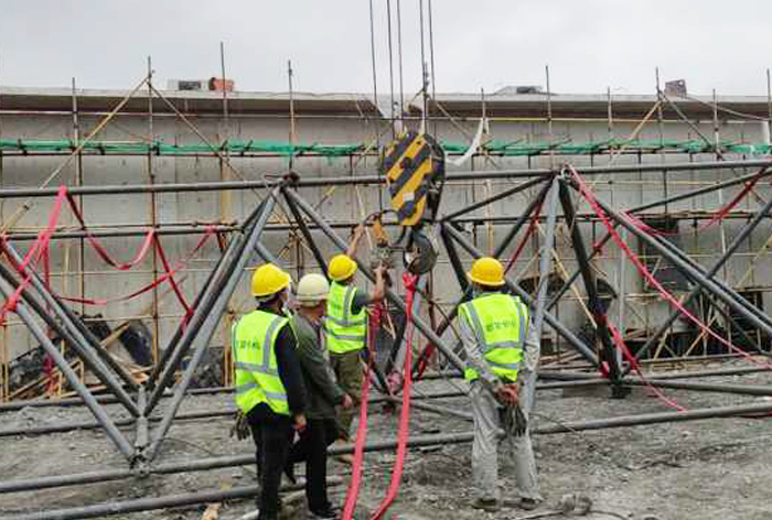5、華亭煤礦網(wǎng)架工程網(wǎng)架安裝前應(yīng)熟悉圖紙,了解施工工藝,弄清節(jié)點(diǎn)構(gòu)造,掌握節(jié)點(diǎn)構(gòu)造,掌握施工方法,注意安裝順序。